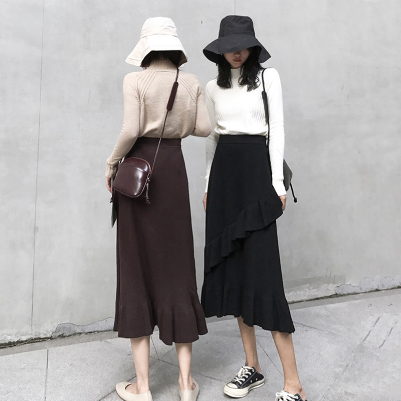 秋裝女2018新款港味學生高腰中長裙時尚休閑荷葉邊半身裙a字裙子