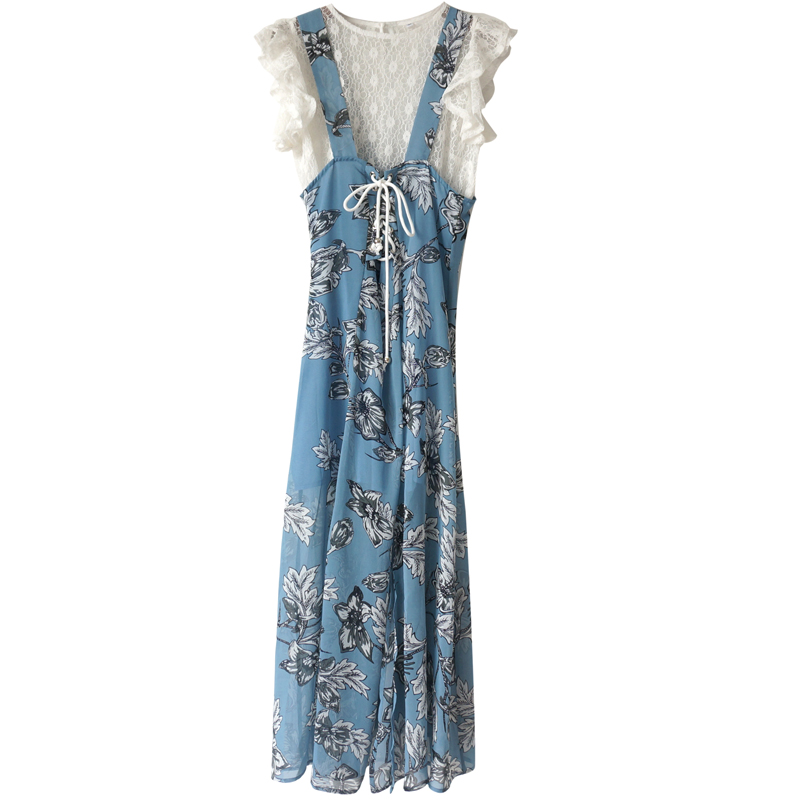 S秀淑女氣質2018夏季新款圓領系帶超仙顯瘦吊帶開叉連衣裙潮