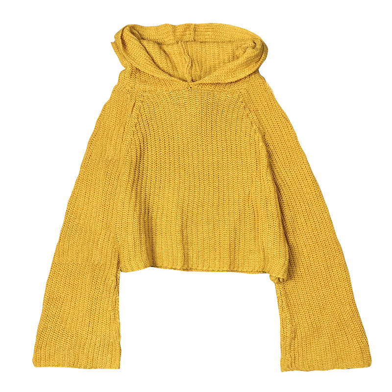 / 2018新款學生V領蝙蝠長袖上衣女韓版寬松短款針織衫粉色連帽毛衣