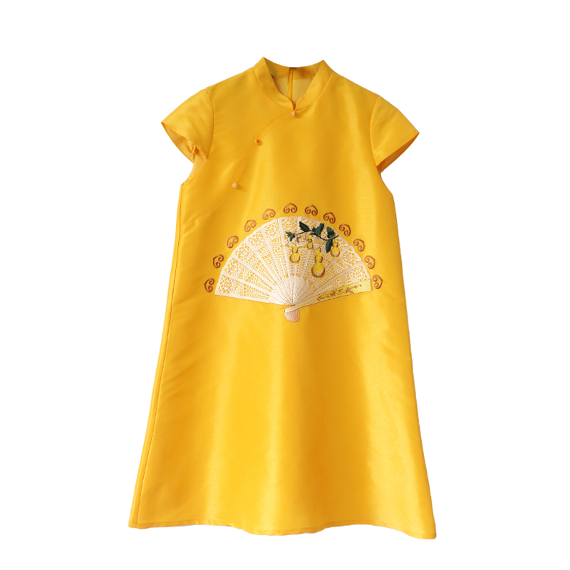 S秀復古風2018夏季新款短袖立領印花A字裙超仙中國風顯瘦旗袍裙