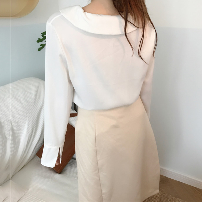 / 初秋新款韓版女裝港味復古氣質V領長袖雪紡襯衫少女純色百搭上衣