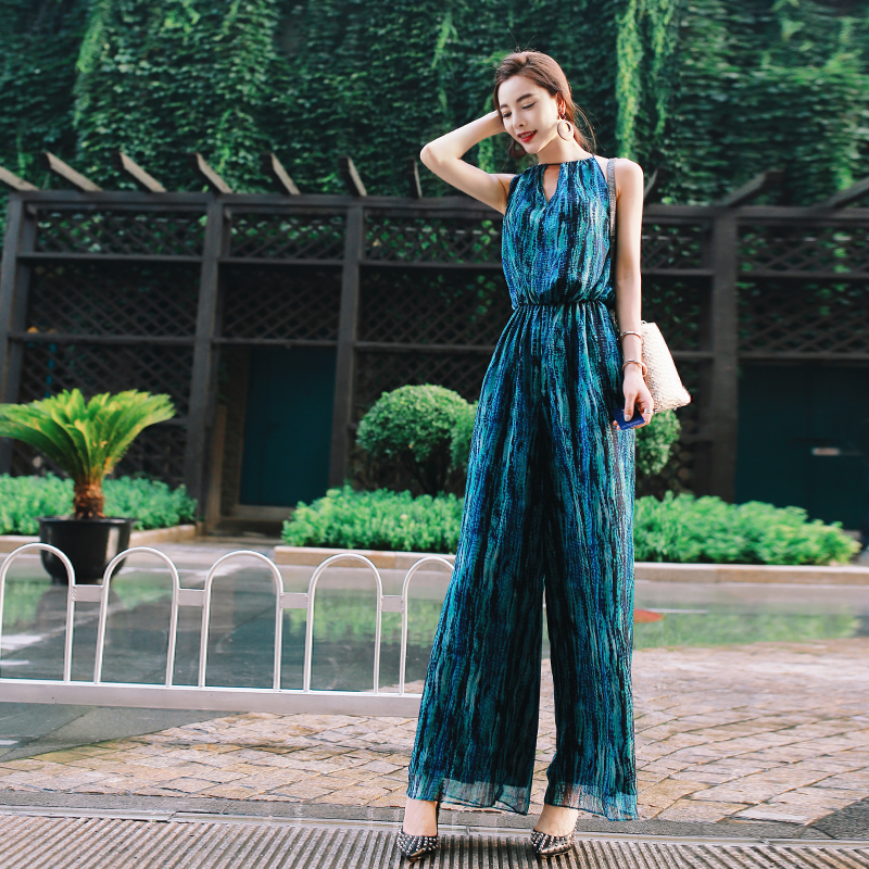 s秀名媛2018新款網紅雪紡顯高腰休閑連體褲垂感闊腿褲女夏長褲