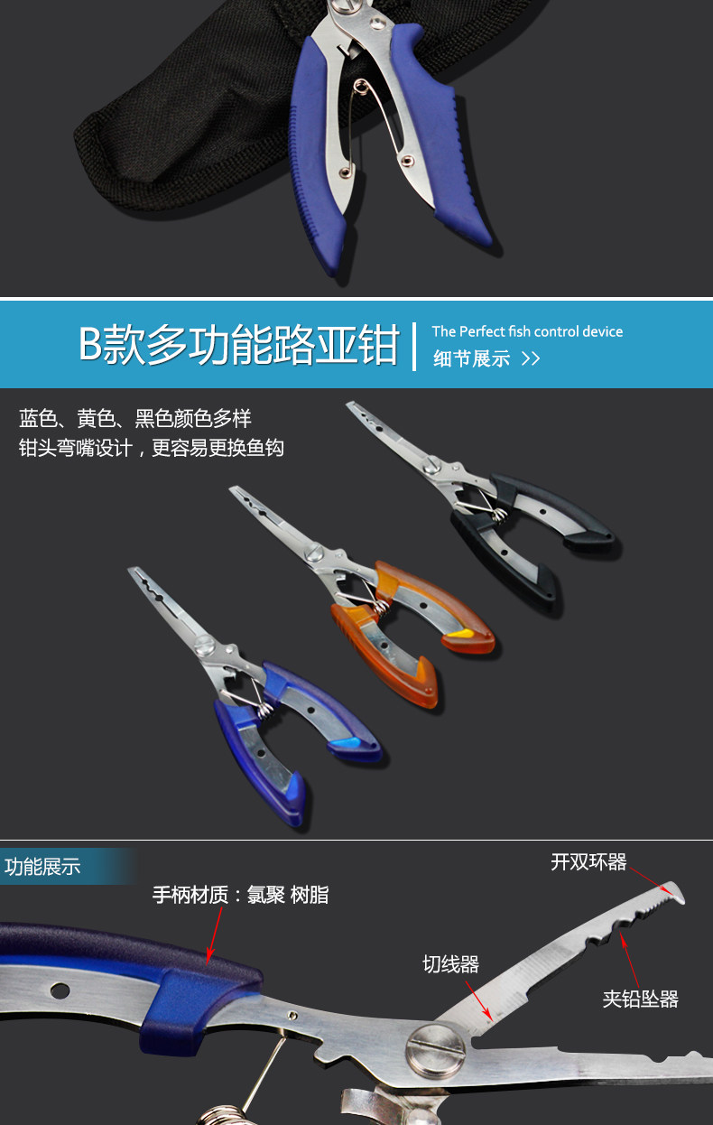 / 多功能不銹鋼控魚器路亞鉗取鉤器帶稱帶尺控魚鉗魚夾路亞漁具用品