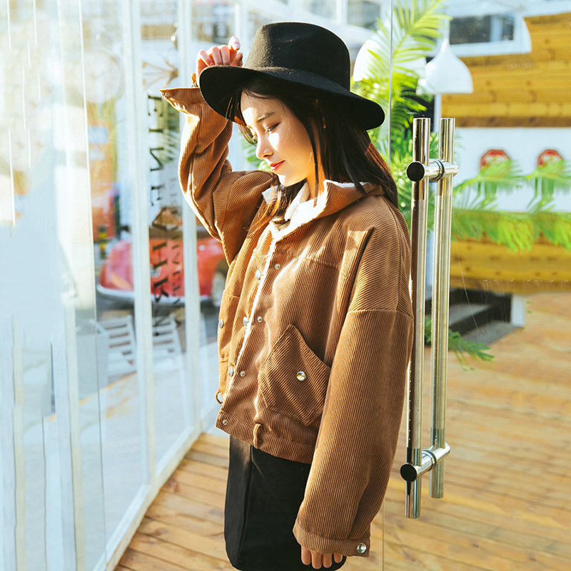 / 復古燈芯絨棉襖秋裝女2018新款港味寬松長袖外套洋氣短款夾克上衣