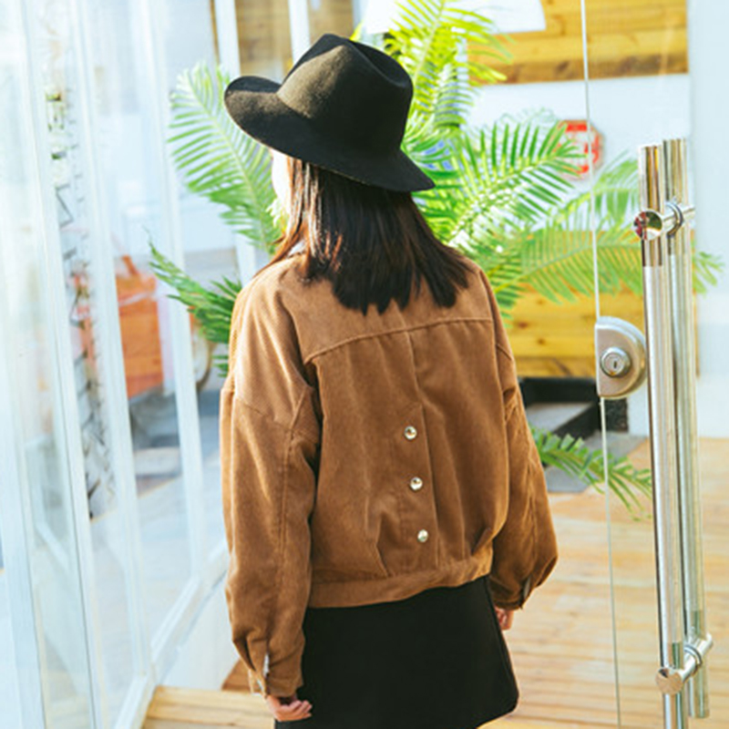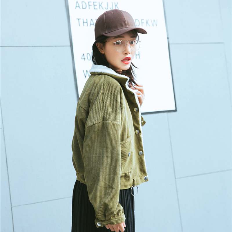 復古燈芯絨棉襖秋裝女2018新款港味寬松長袖外套洋氣短款夾克上衣