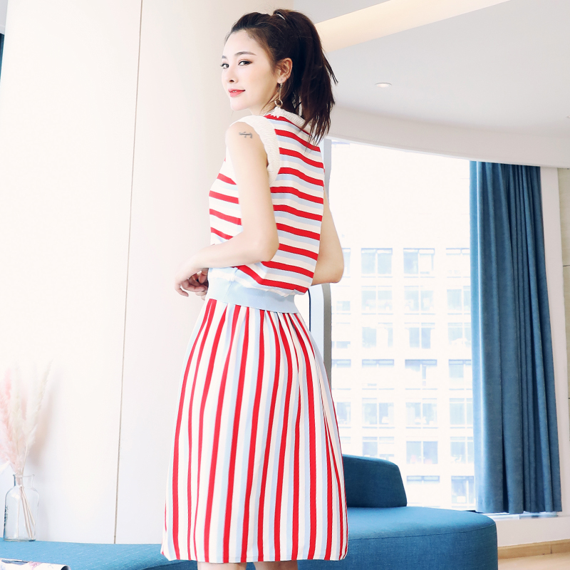 S秀淑女氣質2018夏季新款條紋露肩上衣半身裙套裝兩件套潮