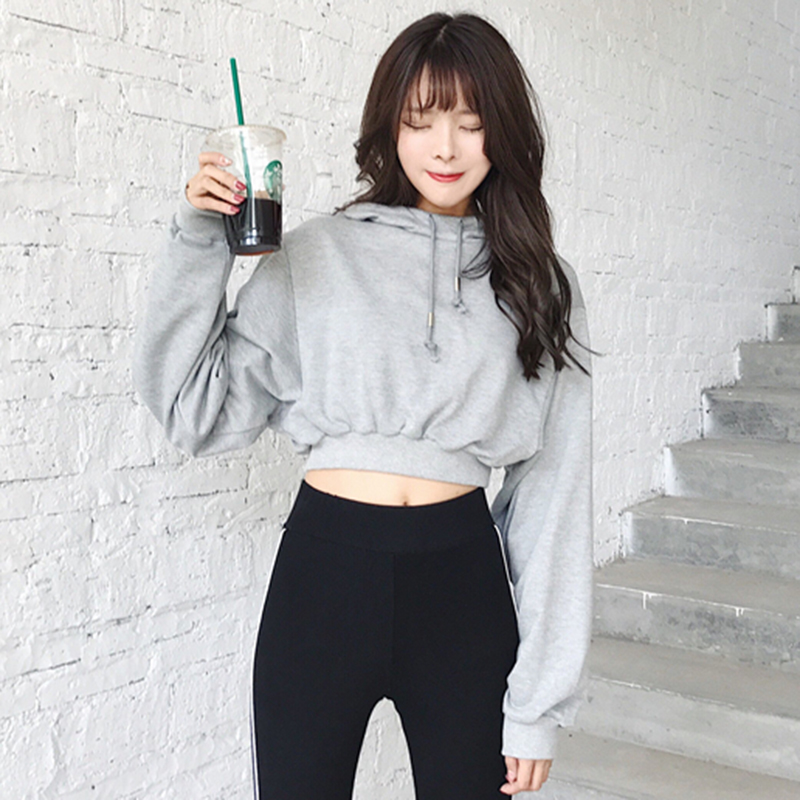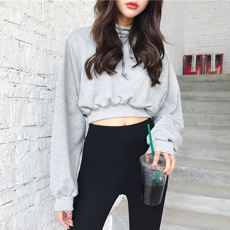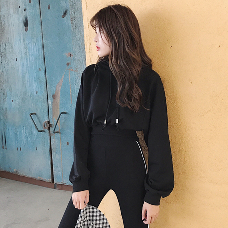 女秋裝2018新款韓版港味學生黑色長袖連帽衛衣慵懶時尚寬松短上衣