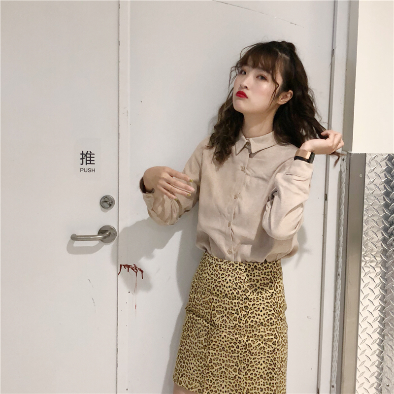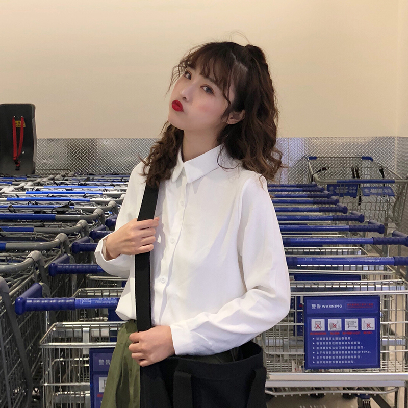 / 秋季女裝韓版寬松學生百搭上衣基礎純色少女休閑長袖襯衫時尚襯衣