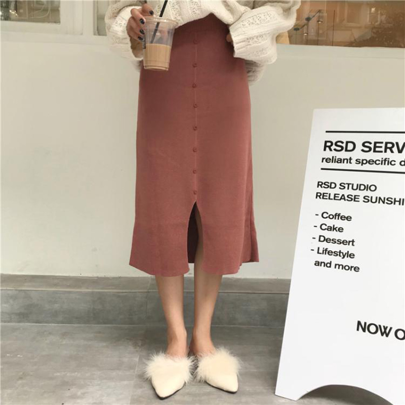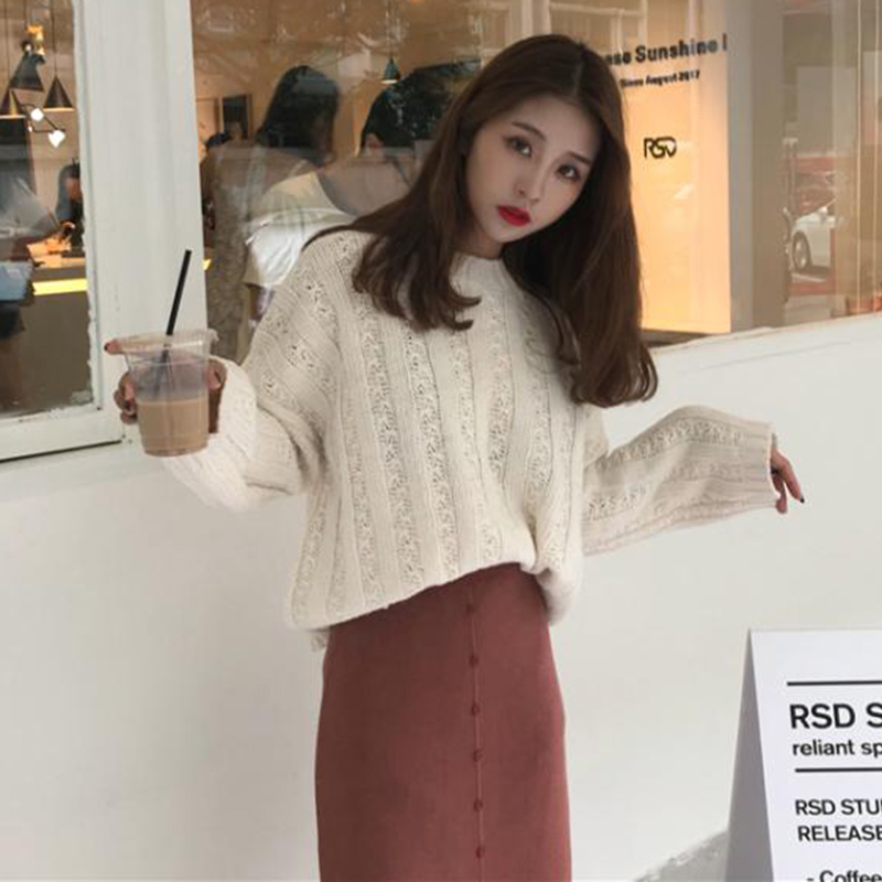 / 秋季韓版套裝女裝休閑套頭毛衣針織衫+高腰開叉半身裙學生兩件套