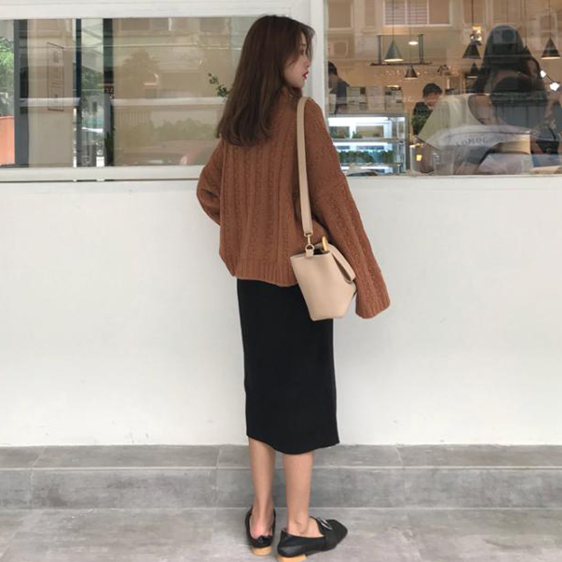 米色毛衣|卡其毛衣|黑色裙子|焦糖色裙子
