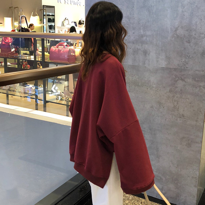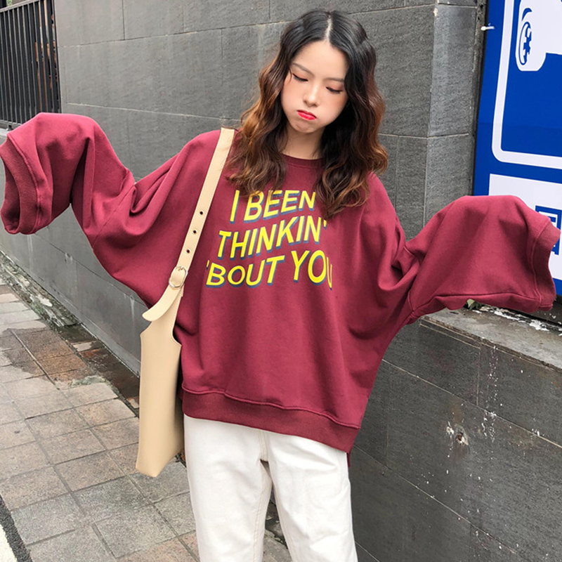/ 時尚秋裝女2018新款韓版學生寬松開叉印花衛衣喇叭長袖圓領上衣潮