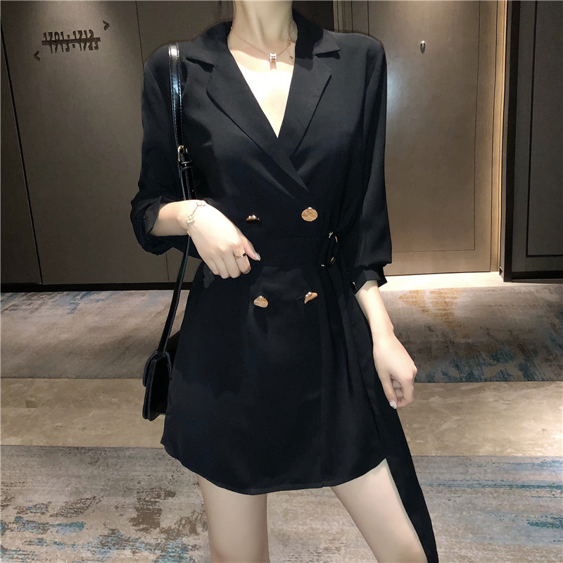 小西裝女秋裝2018新款女裝韓版長袖休閑外套氣質雙排扣中長款上衣