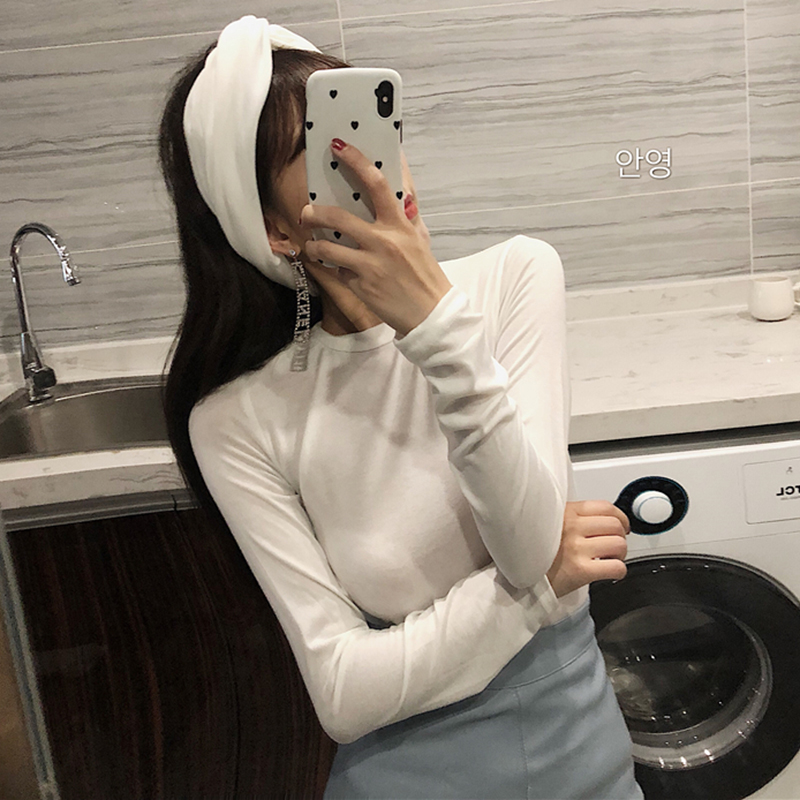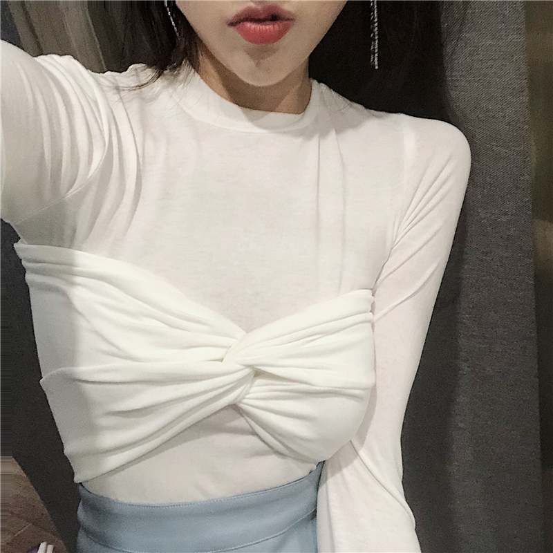 抹胸兩件套打底衫女秋裝新款圓領修身黑色長袖t恤韓版緊身上衣服
