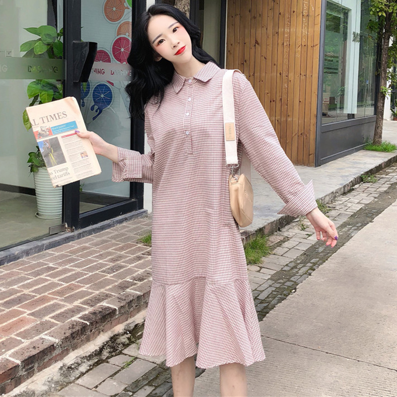 秋裝女2018新款法式少女茶歇裙秋復古港味襯衫魚尾連衣裙秋學生