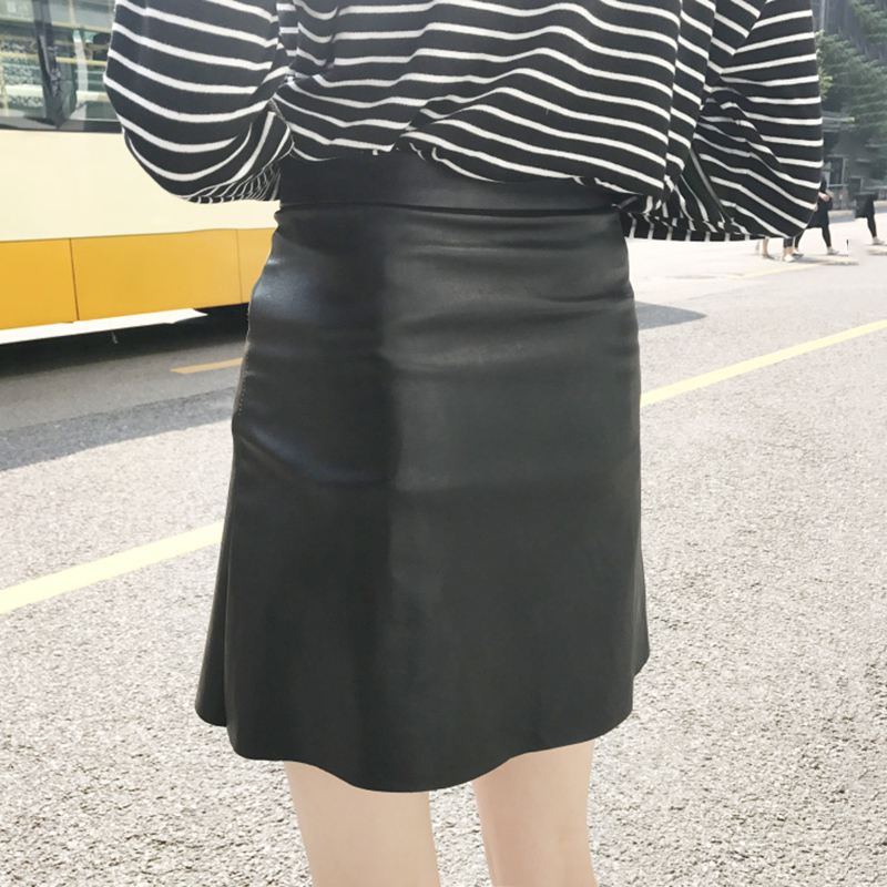 / 2018秋新款韓版時尚pu皮裙子拉鏈高腰A字半身裙女裝黑色包臀短裙