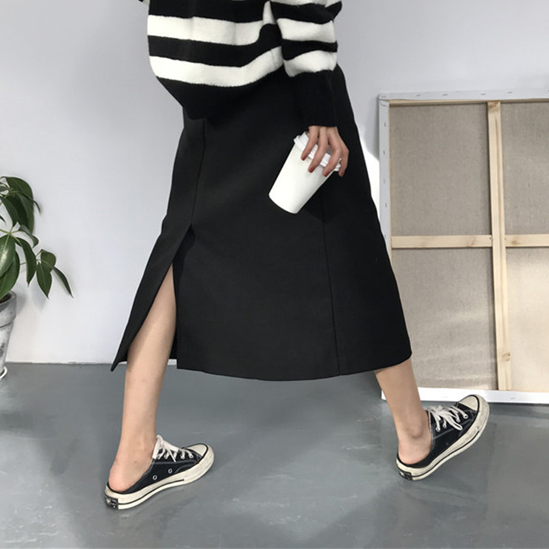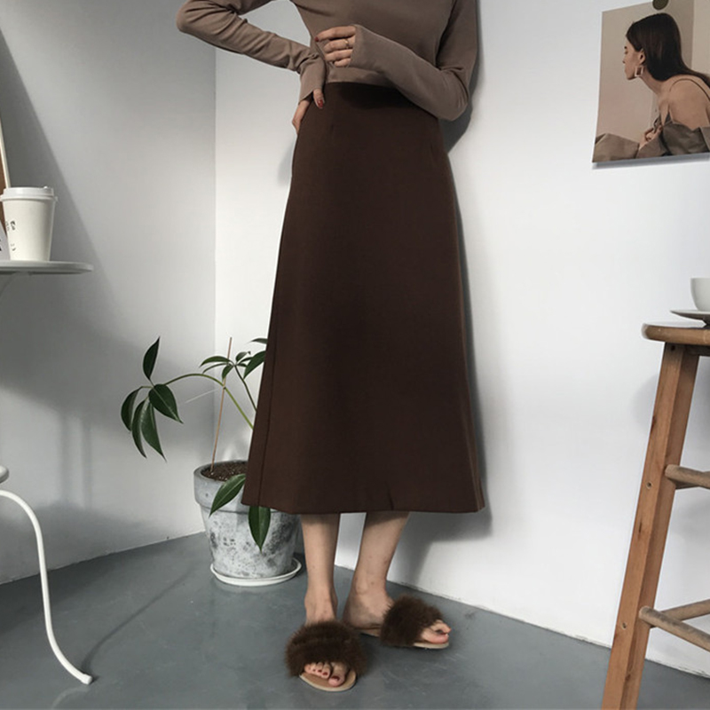 / 簡約黑裙子秋裝女2018新款韓版時尚高腰半身裙學生休閑中長A字裙