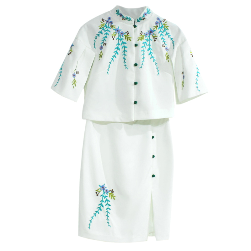 名媛氣質套裝2018春季新款斗篷外套上衣半身裙開叉裙女套裝