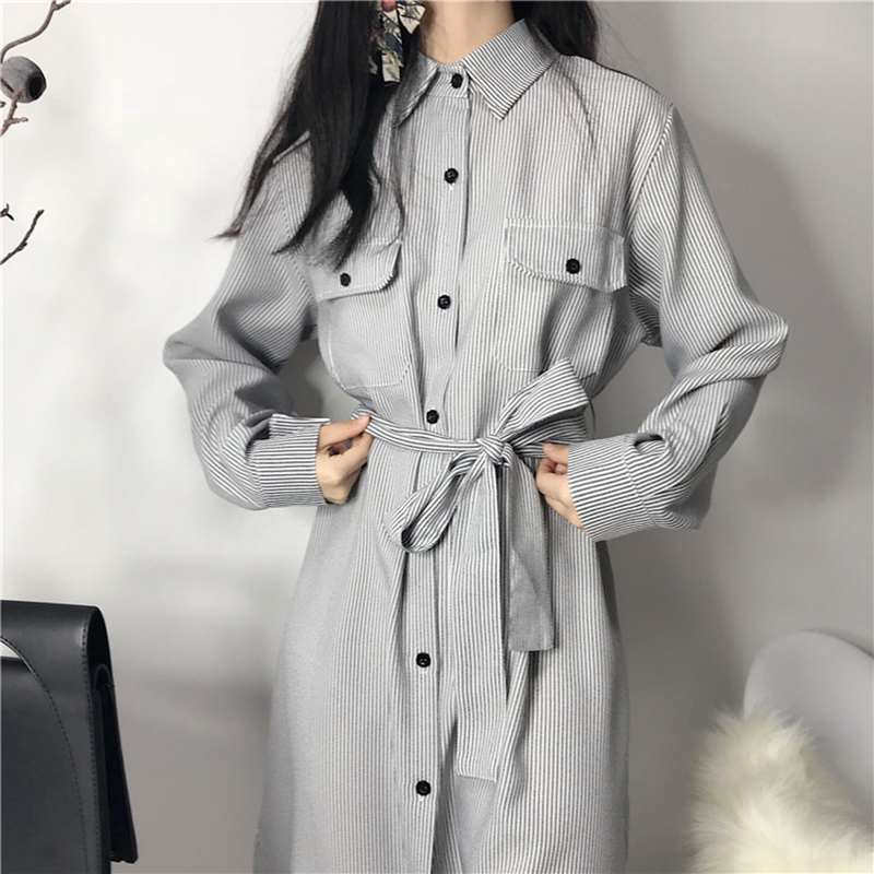 秋裝女2018新款法式少女茶歇裙秋長袖襯衫扣子學生收腰連衣裙子