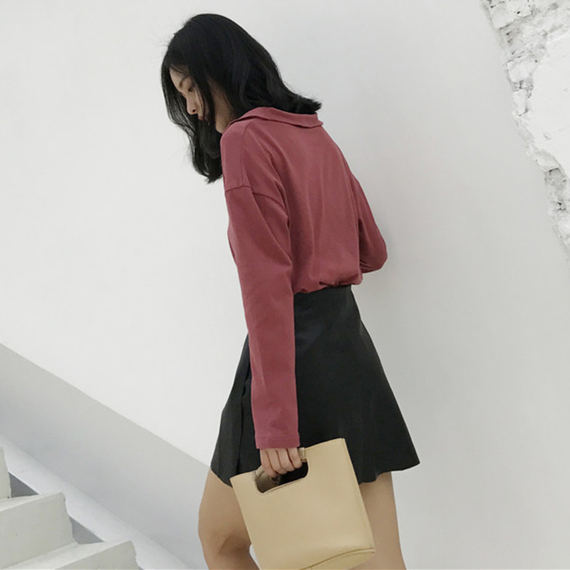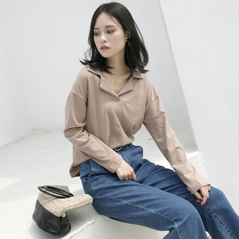 / 黑色打底衫女秋裝新款韓版西裝領長袖上衣學生寬松百搭休閑T恤衫