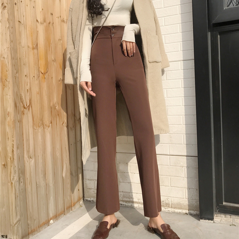 長褲子女2018新款秋裝港味復古黑色高腰西裝褲修身氣質休閑直筒褲