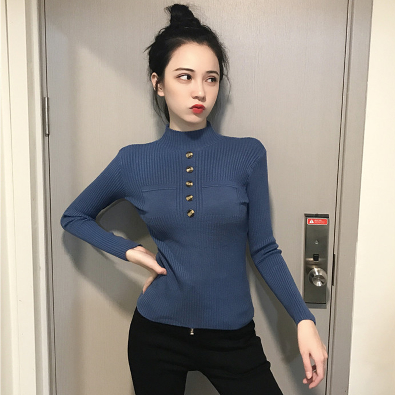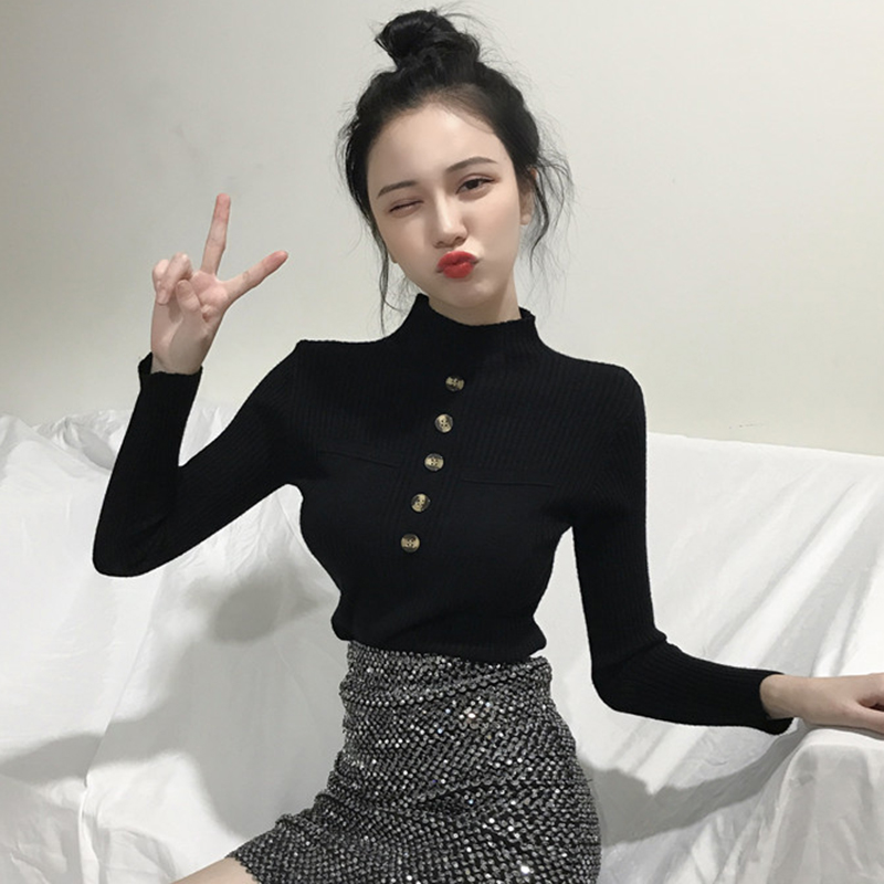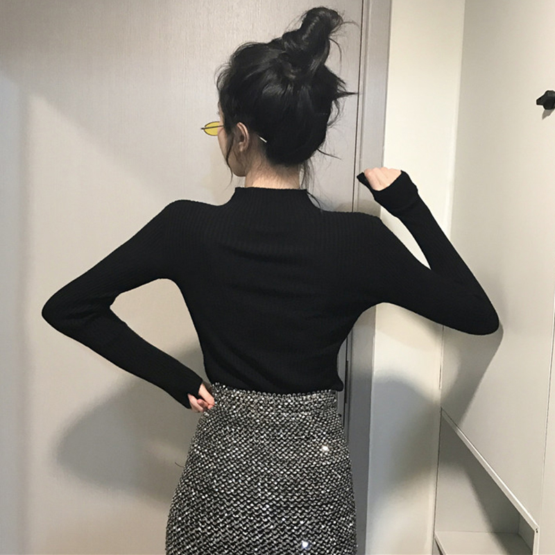 針織衫女秋裝2018新款韓版半高領修身顯瘦打底衫時尚黑色長袖上衣