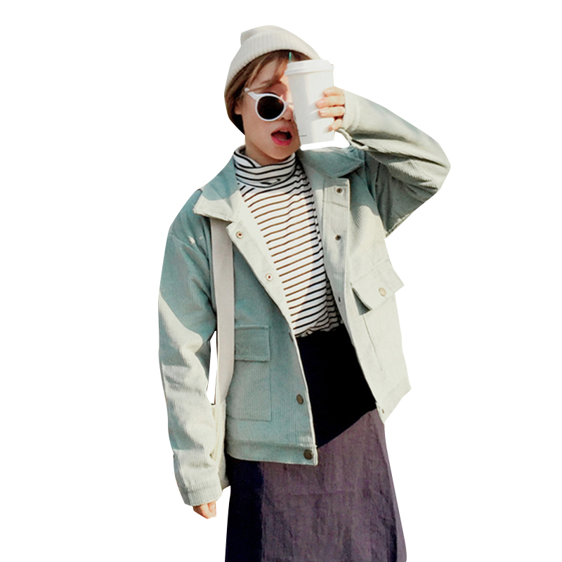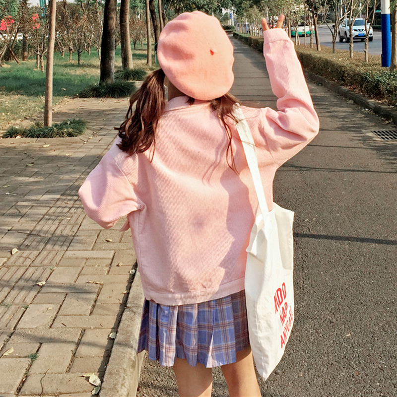 學院風寬松燈芯絨外套2018新款甜美少女粉色上衣學生休閑長袖秋裝